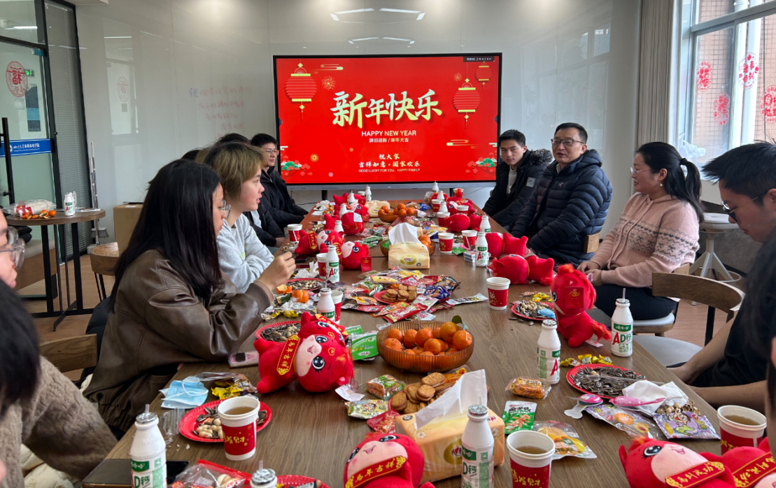 院长杨兴国、党委副书记兼纪委书记马丹与留校本硕博学生欢聚一堂,围坐品茗,共话新春。